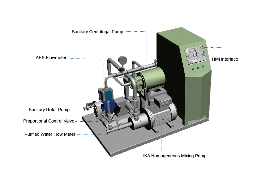 Sometimes it’s really a difficult task to dilute certain types of material, such as AES and other surfactants. How to make the proportion of AES quickly reach 20% -25% with low foaming and less gelling? For the conventional mixing techniques, there are some problems, such as long time-consuming, non-equal mixing, easy to agglomerate, not easy to clean and so on. Planck AES online diluted solution can not only solve the above problems of the conventional mixing technology but also lower down the cost in terms of personnel, cleaning, disposal and energy. This system with all equipment is installed on a common base, completed with internal piping and wiring. It is a compact control system which occupies very little space, while cost very little time for the installation and put into use.